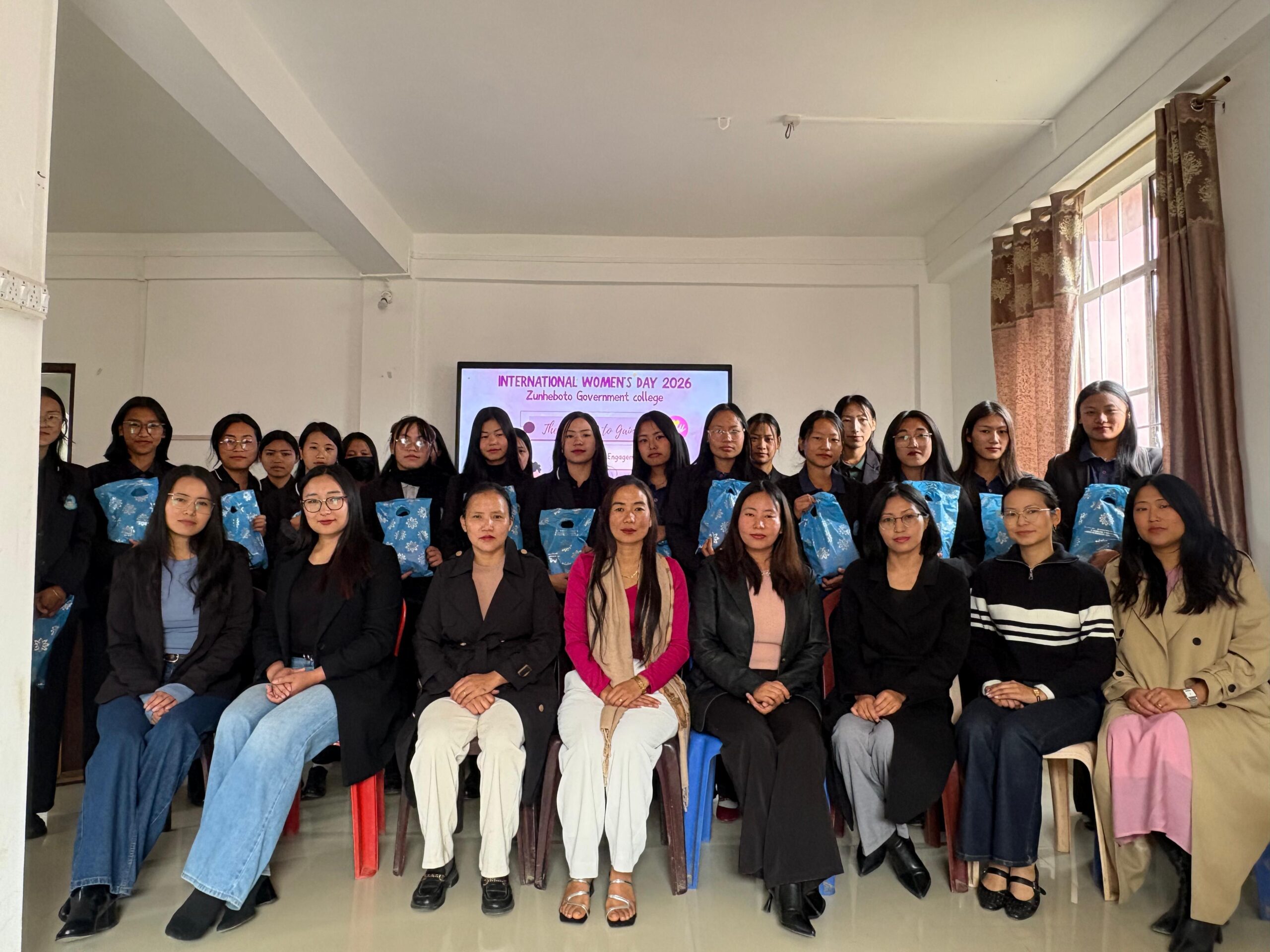 Zunheboto | March 7 (WE THE NAGAS): Zunheboto Government College (ZGC) observed International Women’s Day on March 7, under the theme “Give to Gain.” On this occasion, the Women Cell of the college undertook a community outreach engagement to foster meaningful interaction between female students and elderly women aged 70 years and above. This initiative aimed at providing students with an opportunity to learn from the wisdom, life experiences, and enduring strength of senior women in the community.